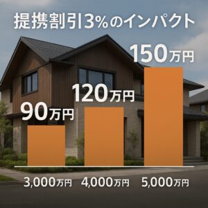 このように、3%という数字だけを見ると小さく感じるかもしれませんが、積水ハウスのような高価格帯のメーカーにおいては、実際の金額換算で100万円近い、あるいはそれ以上の差が生まれます。