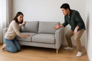 一般的な日本の家具や建材は「尺モジュール(910mm)」を基準に作られていることが多いです。そのため、市販のソファやカーテン、ラグなどを置こうとすると、微妙にサイズが合わずに無駄な隙間ができたり、逆に入らなかったりすることがあります。