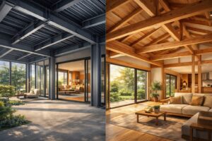 積水ハウスで平屋を建てる際、最初に決める大きなポイントが「鉄骨造」か「木造(シャーウッド)」かという選択です。