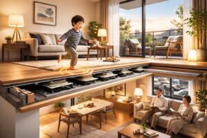 三階建てや二世帯住宅で最も多いトラブルの一つが「上階からの足音」です。